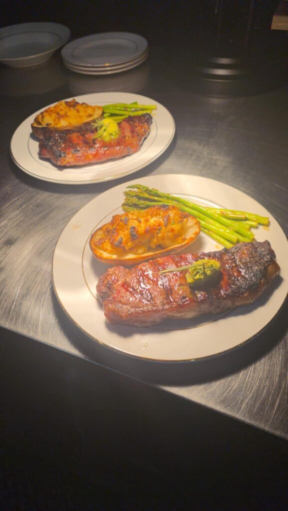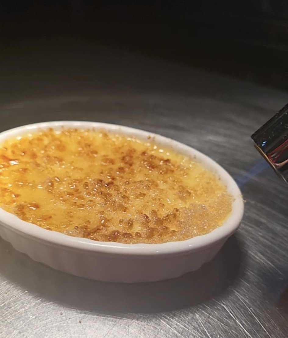 The Menu Savory Starters & Small Plates Bruschetta Fresh tomato tapenade served on garlic crostini, topped with a balsamic glaze 7 Elk DroppingsBlack forest bacon-wrapped dates, topped with balsamic drizzle and green herb oil 9 Fried Artichokes Heartsartichokes, tossed in sweet onion spread, topped with balsamic drizzle and parmesan cheese 10 Squash BlossomsFried zucchini blossoms, filled with ricotta and mascarpone cheese 11 Stuffed Portobello MushroomElk, pork, spinach, parmesan, garlic, topped with gorgonzola cream 12 Crawfish Cakesshrimp, celery, onion, Dijon, lemon, house-made romesco* 14 Soup and Salads House SaladSpring romaine mix, cucumber, tomato, red onion, parmesan, pepperoncini, lemon vinaigrette 8 The Royale CaesarCrisp romaine, parmesan, lemon, house-made caper Caesar dressing, croutons 9 Market SaladSpinach, fresh pear, candied walnuts, feta, craisins, lemon vinaigrette 10 Add Blackened Shrimp 8 Add 6 oz Grilled Chicken 8 Add 3 oz Grilled Sockeye Salmon 9 French Onion Soup The Royale take on a classic with garlic crostini and Gruyère cheese 8 Chef's Choice Soup Rotating options to tempt you 9 Entrees Blackened Pork Ribeye 10 oz pan-seared topped with melted gorgonzola, white truffle butter 29 New York Strip12 oz cut grilled to order with herb butter 32 Ribeye14 oz boneless cut with herb butter 37 Beef Tenderloin Surf and Turf8 oz cut pan-seared tenderloin topped with a demi-glaze skewer of grilled shrimp with a choice of potato and the chef's choice of vegetables 45 Sockeye Salmon6 oz wild caught Alaskan fillet topped with a lemon, caper, dill sauce, and chef’s choice vegetables 34 Chicken Saltimbocca Prosciutto wrapped chicken breast, sage, reduced in butter and white wine, served with Yukon gold garlic mashed potatoes, chef’s choice vegetables 21 Gorgonzola Steak Pappardelle Thin cut ribeye sauteed with onions and mushrooms in a gorgonzola cream 19 Pasta Primavera Cavatappi noodles, pesto, cream, balsamic, and tomato tapenade 17 Bison MeatloafGround bison & pork, garlic, onion, demi-glaze, parmesan, house romesco* with Yukon gold garlic mashed potatoes, and chef's choice vegetables 19 Beast BurgerWagyu beef, bison, venison, wild boar, topped with smoked cheddar, tomato, onion, lettuce, aioli served with rosemary fries 21 Desserts Vanilla Burbon Creme BruleeCreamy custard with a brown sugar caramelized crisp 9 Chocolate CheesecakeRich and decadent with a citrus zest and chocolate drizzle. 9 Chef's Choice SorbetThe perfect palate cleanse to end your meal with 6